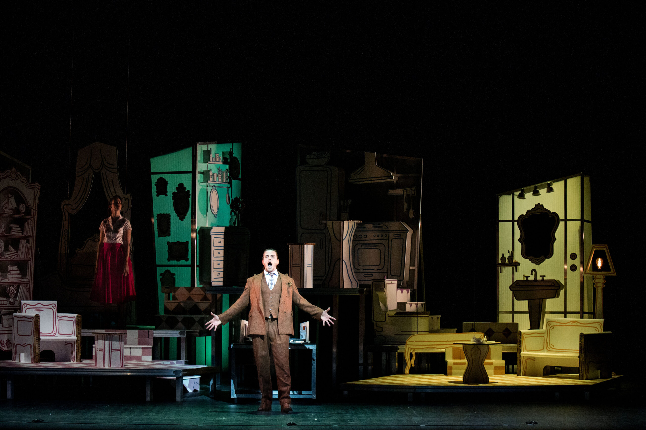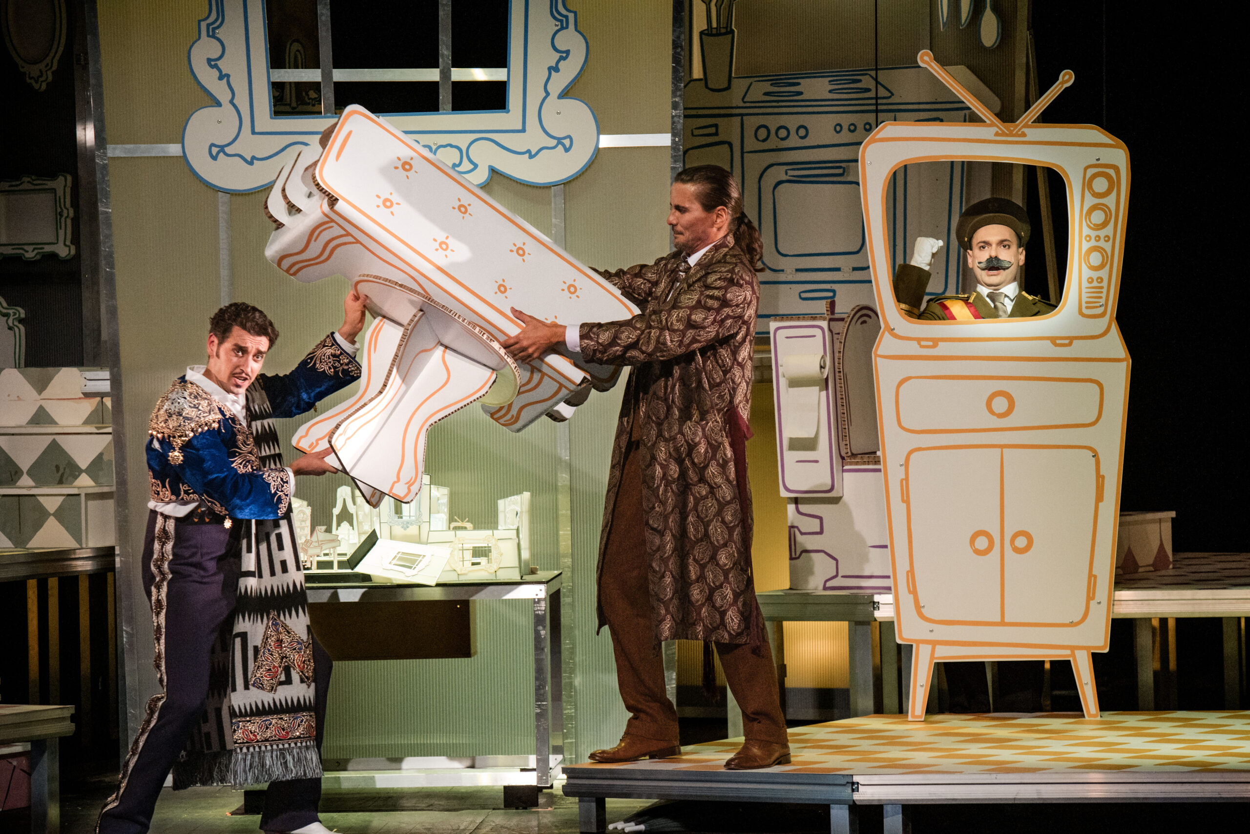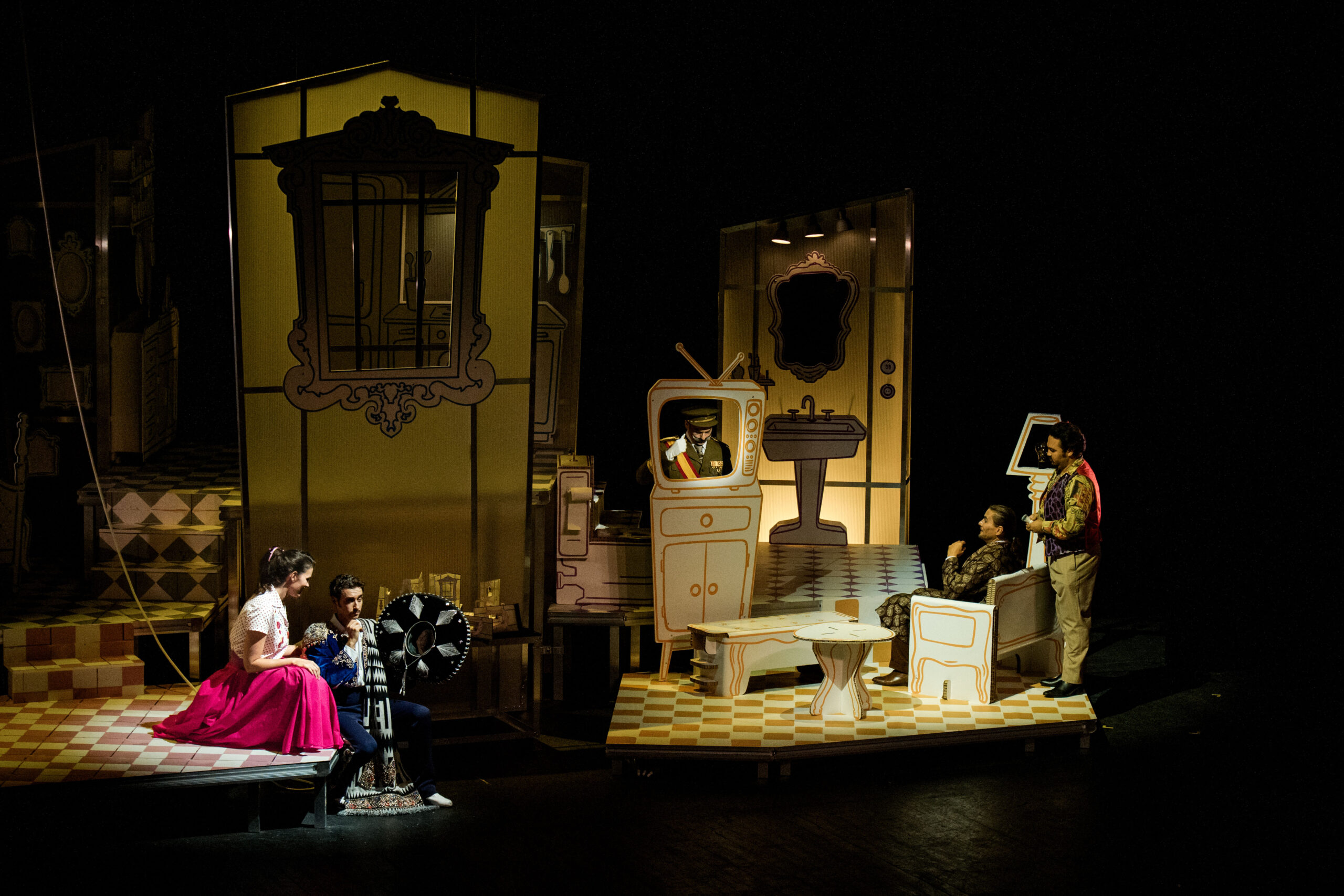 Scénographie pour l’opéra « Le Barbier de Séville » de G. Rossini, mise en scène et ré-écriture des textes parlés en français par Christophe Mirambeau